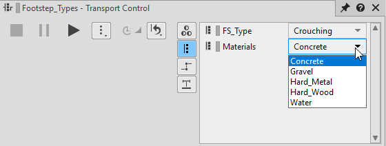 Load the “Footstep_Types” Switch Container or the “Play_Footstep” Event into the Transport Control.