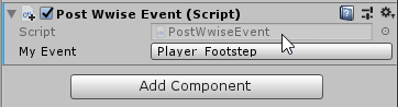In the Inspector, click Add Component and select PostWwiseEvent.