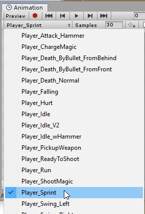Here you'll find all the Animation clips used by the Player's animation system, managed by the Animator component.