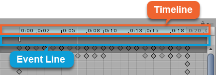 Alternatively, you can add Animation Events by clicking the Add Event button to the left of the Event line. This will add an Animation Event at the position of the Timeline Cursor.