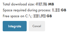 Click Integrate to apply the operation to your project. (Or click Cancel if for some reason, such as the indicated Total download size being too great, you do not want to proceed with the Wwise integration into your Unity project.)