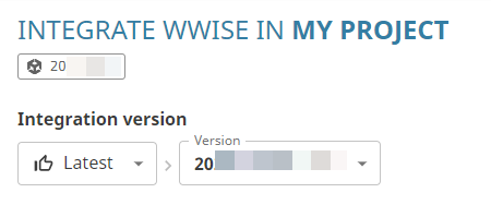 From the version list at the top of the page, select the Wwise Unity Integration version that starts with the version of Wwise you installed when meeting the prerequisites for this procedure. (The Launcher automatically creates a Wwise Integration version number for each potential Integration. The version number always starts with the associated Wwise version number.)