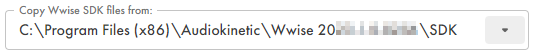 If you have an existing Wwise project you would like to use with the Integration, enter the corresponding Wwise project path, or leave the field empty to create a new Wwise project.