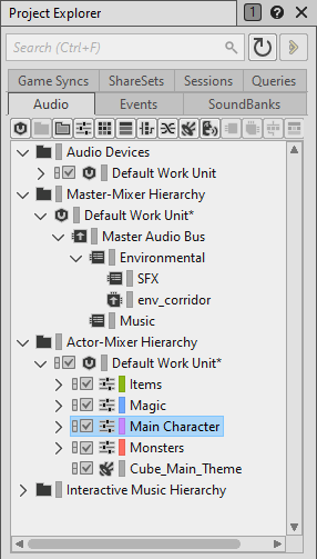 Project Explorer에서 Main Character Actor-Mixer를 선택하세요.