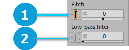 위에서 언급한 것처럼 Wwise에서는 Game Parameter에 특정 속성값을 지정할 수 있습니다. 이 기능은 실시간 매개 변수 제어 (Real-time Parameter Control, RTPC)라고 불립니다. Wwise gives you visual feedback on which properties have been assigned as an RTPC. 속성값이 Game Parameter에 지정될 경우 속성의 RTPC 표시기가 테마 전용 색으로 변합니다 (Classic 테마의 경우 파란색, Dark 테마의 경우 주황색).