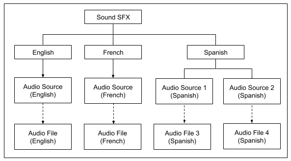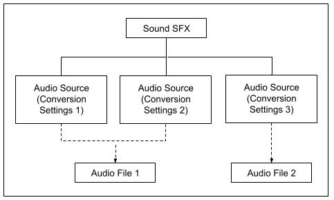 The various voice and SFX assets in your game are represented in Wwise by special audio structures called sound objects. These sound objects contain sources that are linked to the original audio file.