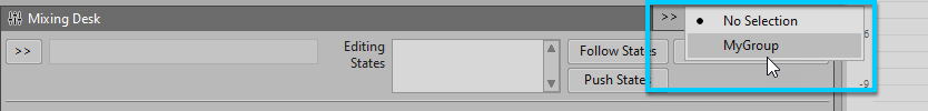Mixing Desk의 오른쪽 위의 모서리에 있는 선택 버튼 [>>]을 클릭합니다.