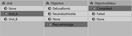 In the Objective column, select either DefuseBomb, NeutralizeHostile, or RescueHostage.