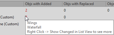 您可以通过将鼠标悬停在相应列中的数值上来在工具提示中查看受影响对象的名称: