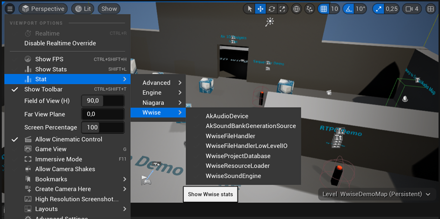 More examples of code can be found in the WwiseDemoGame under WwiseDemoGame/WwiseCodeExample and can be experimented with in the WwiseDemoCodeExampleMap.
