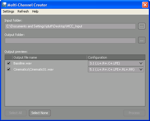 The Multi-Channel Creator automatically scans the folder and populates the Output preview list.