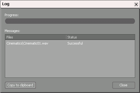 The Multi-Channel Creator only supports files in the PCM audio format (.wav). If you try to use other file formats that are not supported, you will encounter errors while generating the output files. These errors are displayed in the generation log.