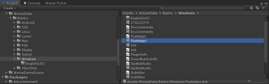 ![]() | Caution: This directory must be inside your Assets folder for the SoundBanks to be properly imported. |