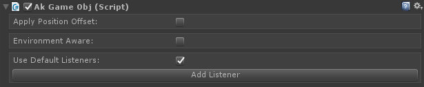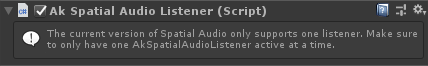 - Adding an AkSpatialAudioListener component will automatically create an AkAudioListener, AkRoomAwareObject and AkGameObj component.