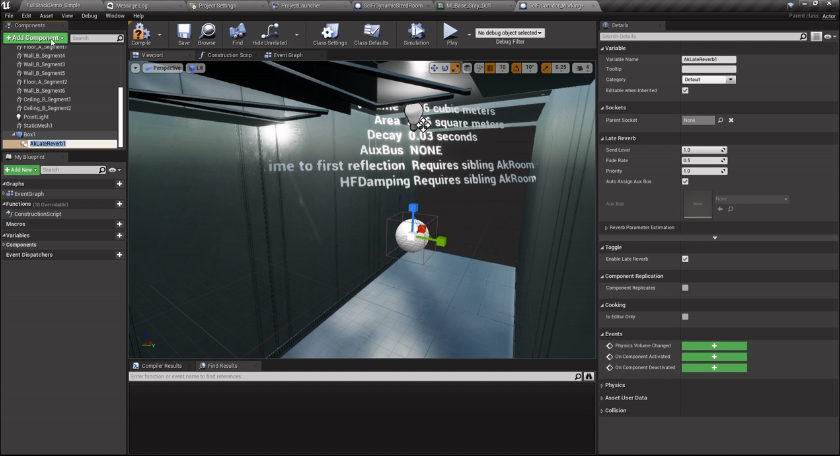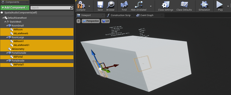 The AkRoom, AkPortal, AkLateReverb, and AkGeometry components have all been updated to support a UPrimitiveComponent as the attached parent. This means you can design your own custom Blueprint classes using the Spatial Audio components.