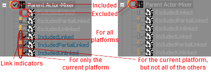 When you are defining which sources will be used for your platforms, you can use the link/unlink indicator to check each source's status. When a source is unlinked on the current platform, the link/unlink indicator is completely orange. However, when the source is unlinked on another platform, the indicator is partly orange.
