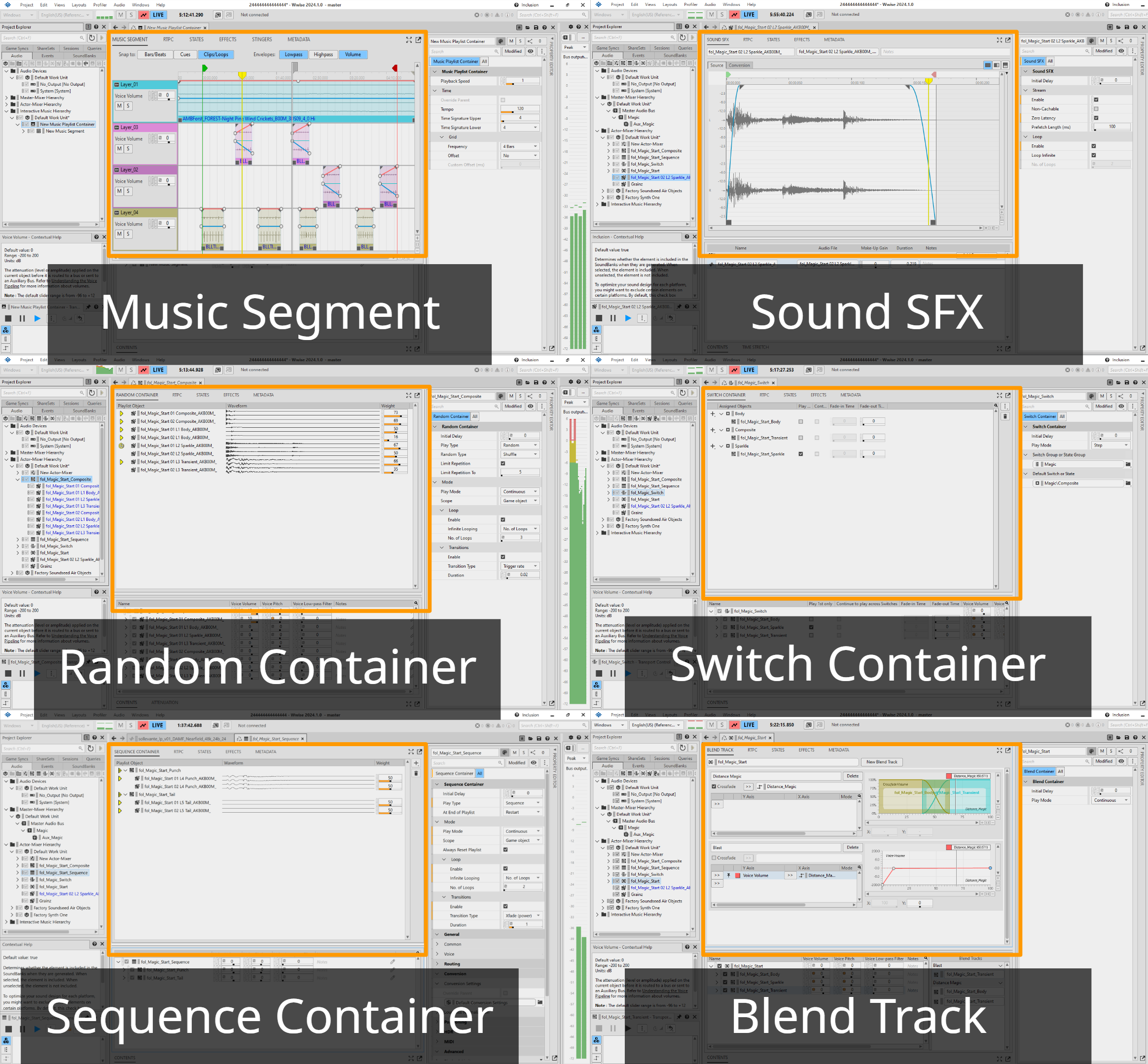 Wwise 2024.1 improves on Wwise workflows that are fundamental to the creation of believable, impressive audio experiences. The real-time connection between Wwise and the game engine has been improved: live media transfer and expanded live editing capabilities provide an uninterrupted workflow. In addition, default object editors and properties are more visible and focus clearly on the aspects of sound, music, and dialog that determine their behavior. These enhancements give today's interactive audio community the best opportunity to iterate towards the best-sounding experiences.