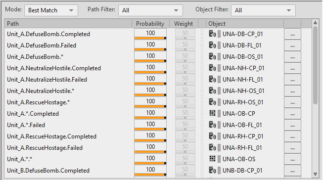In the Objective column, select either DefuseBomb, NeutralizeHostile, or RescueHostage.