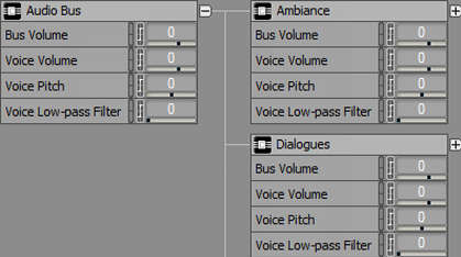 You can use the controls displayed under each project object in the Schematic View to edit the object. These controls work identically to those in the Property Editor. For more information on using these controls, refer to Wwise interface basics.