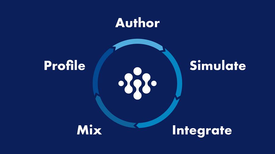 A powerful authoring application—a non-linear authoring tool for creating audio and motion asset structures, defining propagation, managing sound, music, and motion integration, profiling playback, and creating SoundBanks.