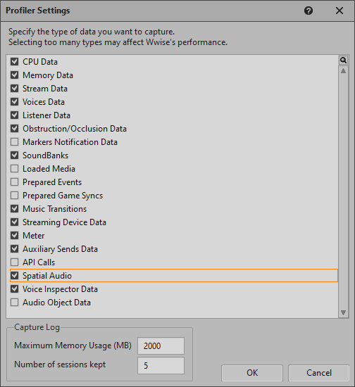 - In the Profiler settings, reachable from the gear icon in the top right corner of the Advanced Profiler view, make sure Spatial Audio is selected to be able to see Spatial Audio drawings in the Game Object 3D Viewer (next step).