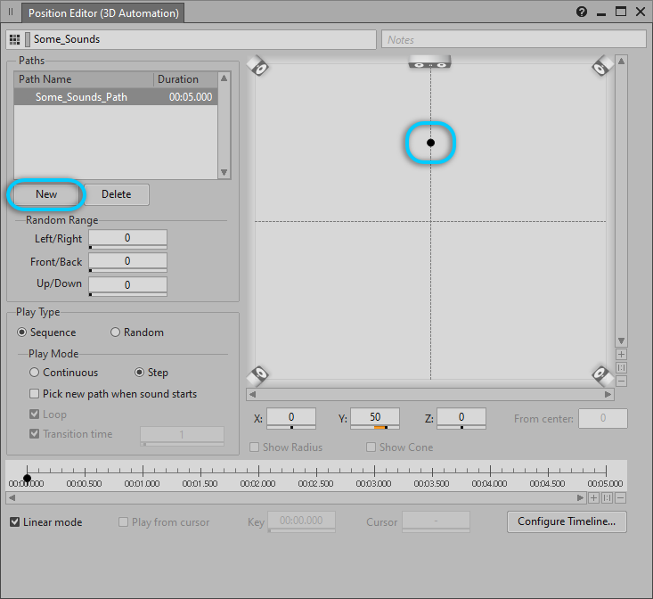 Click the Edit the 3D Automation Paths button. The Position Editor (3D Automation) view opens.