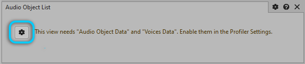 In the Profiler Settings dialog, select the Audio Object Data and Voices Data options.