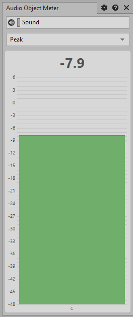 Both the Audio Object Metadata view and the Audio Object Meter view display data corresponding to the selected Audio Object.