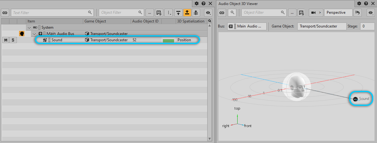 At this point, the Audio Object is displayed in the Audio Object List view and Audio Object 3D Viewer.