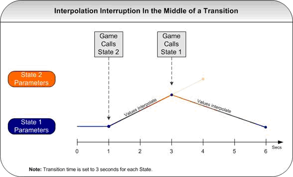 If the transition time is set to zero (that is, there is no transition time), there is no transition and the parameter value jumps directly to the target value. If the presence of a transition does not make the game sound better, the transition should be set to zero to save transition resources.