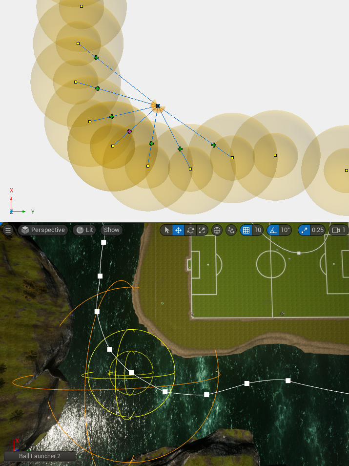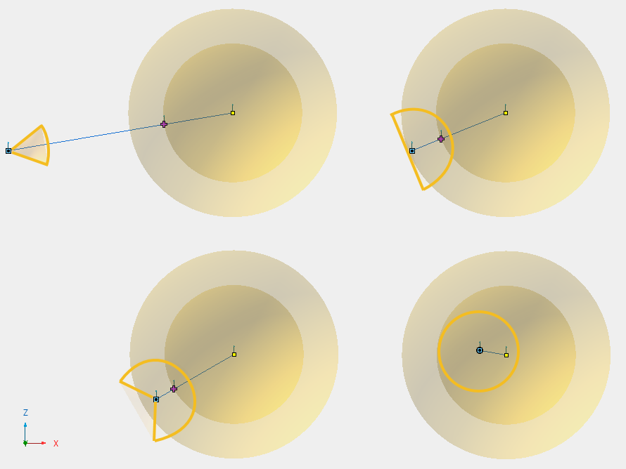 The two radii drive a position-driven spread value that applies to the sounds emitted by the game object. When using a Radial Emitter, it is not necessary to define a spread curve in the Attenuation of the sound.