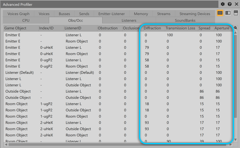 The diffraction and transmission of emitter spread can now be visualized in the Game Object 3D Viewer.