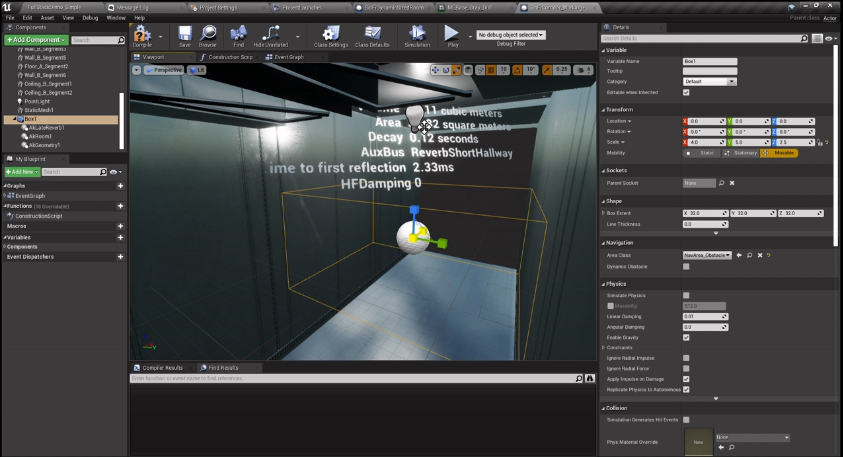 The AkRoom, AkPortal, AkLateReverb, and AkGeometry components have all been updated to support a UPrimitiveComponent as the attached parent. This means you can design your own custom Blueprint classes using the Spatial Audio components.