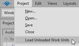 The option to load and unload Work Units is available in the Project menu and from the shortcut menu by right-clicking on a Work Unit.
