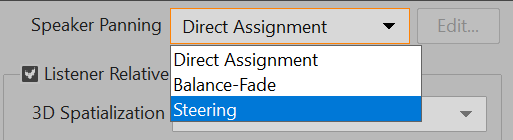 Steering has been added to the list of Speaker Panning modes and allows for steering of a sound's channels into any of the speakers.