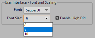 For better accessibility, support for the Segoe UI font type and font sizes have been added to the User Preferences dialog box, accessed through the File menu.