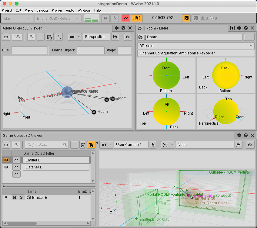Wwise Authoring on macOS now supports 3D, including 3D features such as metering, and spatial audio representation in the Game Object 3D Viewer.