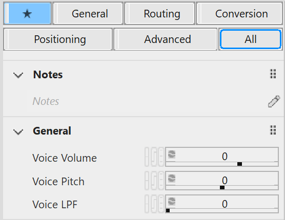 The Favorites category now includes common properties for each object type by default. These properties might be familiar to anyone who has used previous versions of Wwise, because they are similar to the properties that were presented in the General Settings tab of the legacy Property Editor for each object.