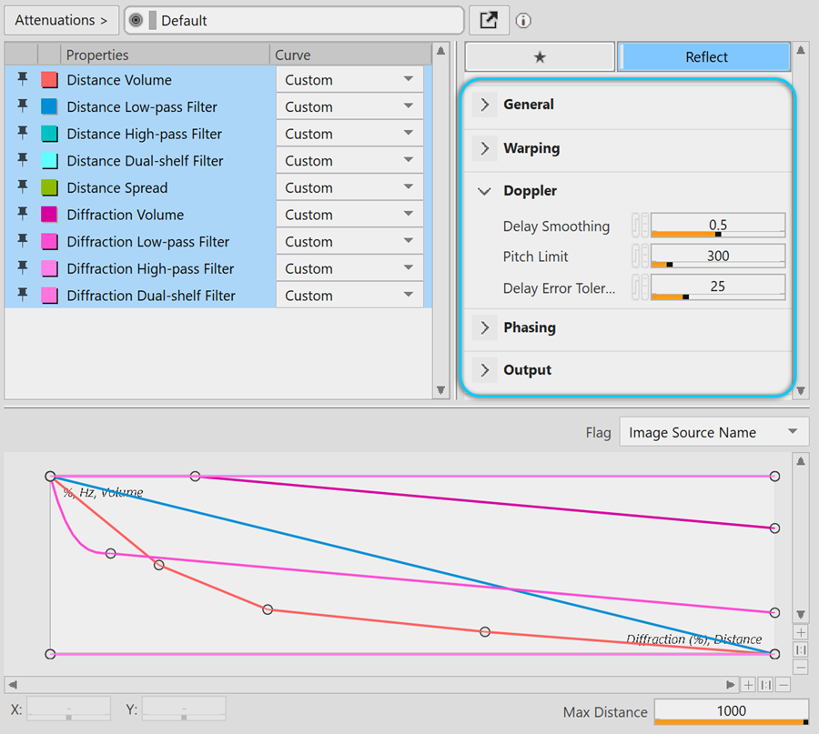 Environmental Curves at the project level are now defined by an Attenuation ShareSet specified in the Project Settings. This makes it easier to modify the Project Environmental Curves at runtime while maintaining the ability to optionally override or remove the inheritance of individual curves on a per-Attenuation basis. It also makes it easier to share Environmental Curves across projects. Additionally, new projects target a default set of physically-based Environmental Curves that provide a realistic starting point for acoustic simulation.