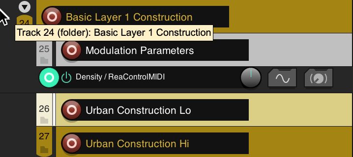 Track colors vary by layer, and the track names and colors are used similarly throughout the Ambience Urban subprojects.