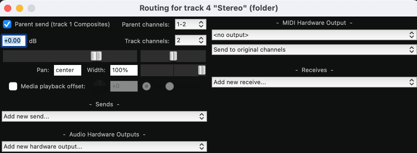 The following figure shows the routing of Stereo Composite Track to its parent track Composites.