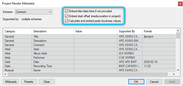 The Strata collection main projects contain subprojects. By default, REAPER is configured to render subprojects automatically, which is unnecessary with Strata because each main project contains rendered versions of selected sounds from the subprojects. We strongly recommend that you disable automatic subproject rendering to improve performance.