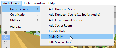 Select Audiokinetic > Game Scenes > Main Only.