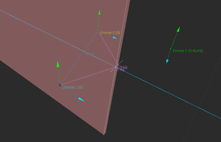 Finally, note that acoustic textures assigned to acoustic surfaces do not have any effect on diffraction because edge materials don't absorb energy. Edges simply bend sound.