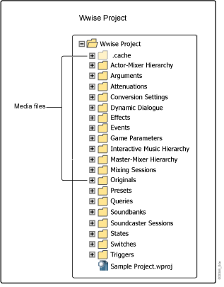 It is helpful to understand how media files are stored in a Wwise project, particularly if you are working as part of a team. Media files are stored in two separate folders: