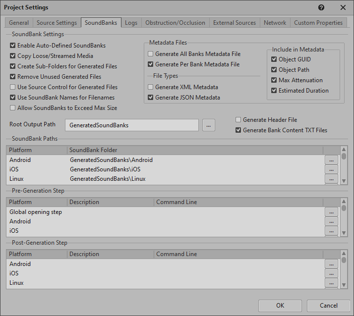 ![]() | Note: The Root Output Path is relative to the Wwise project, while the Generated Sound Banks Folder is relative to the Unreal project's Content folder. |