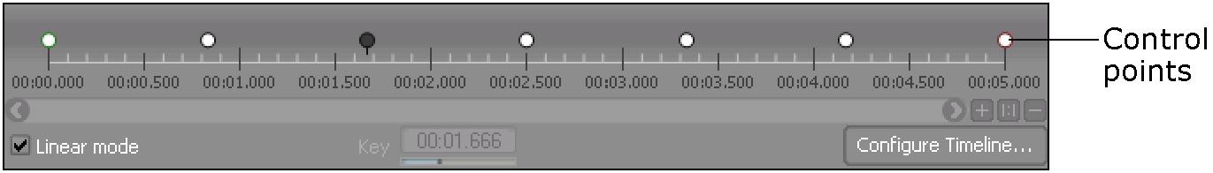 When the timeline is in non-linear mode, you can move control points to change the time between each point. This creates the Effect that the object is speeding up or slowing down between points. A control point can't be moved past the control point before or after it.