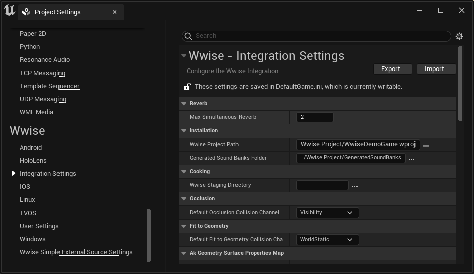 ![]() | Note: The Root Output Path is relative to the Wwise project, while the Generated Sound Banks Folder is relative to the Unreal project's Content folder. |
