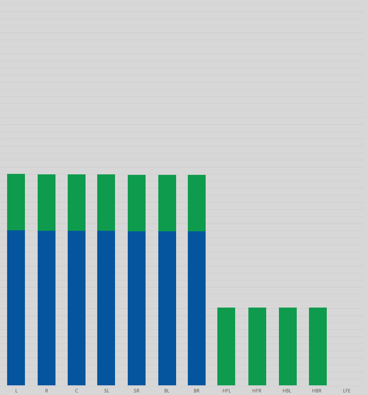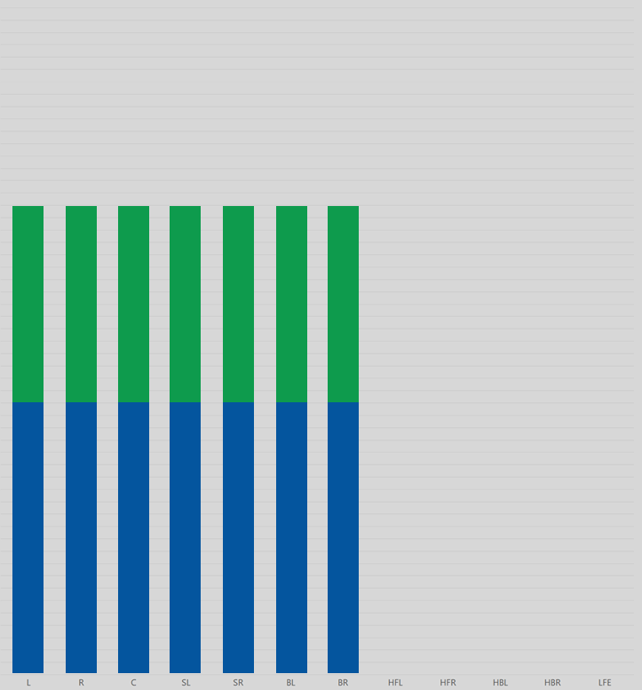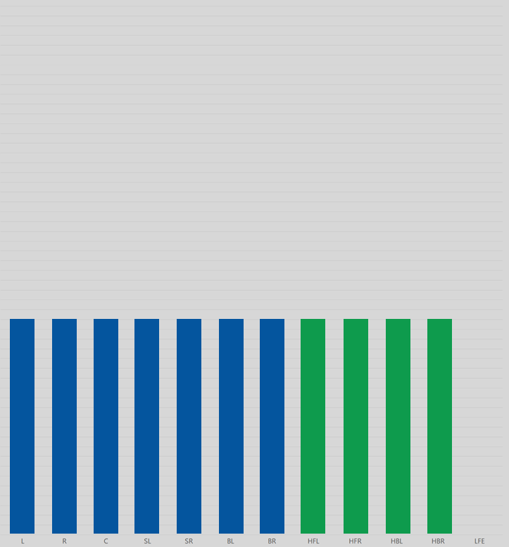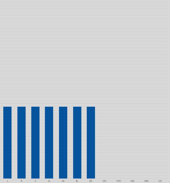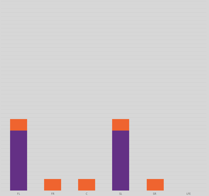 The content of the surround layer is evenly split between the channels of the surround layer and of the height layer. |