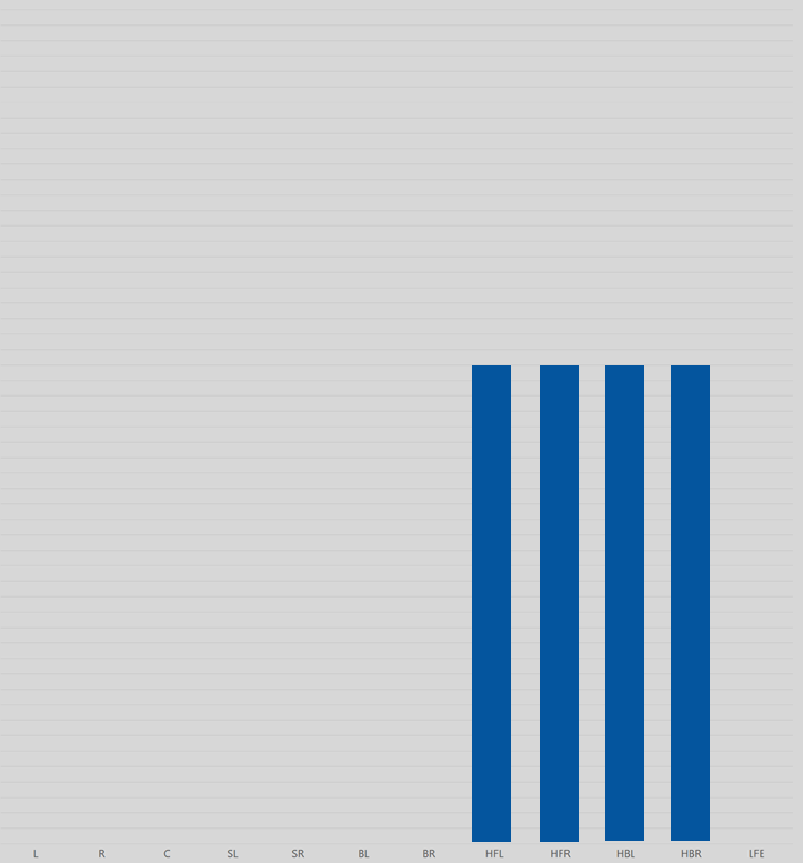 By increasing Z to a value above 0, the content of the surround channels of a 7.1.4 sound starts to play in the four channels of the height layer of a 7.1.4 Output Bus. The figures in the following table illustrate this effect.